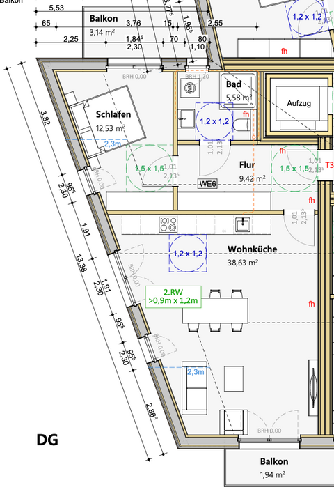 schwellenlosen Zugängen; schwellenarme Außenraumgestaltung und Adaptionskonzept für rollstuhlgerechte Wohnungsgrundrisse.